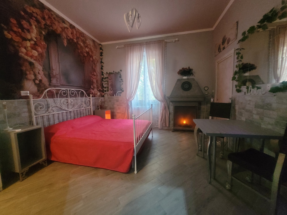 Bagno privato.Arredato in modo romantico per coppie , con ampia camera vista camino decorativo , con doccia, e ulteriore nicchia nella stanza vista letto con vasca angolare con decori glitter e giochi di luce al soffitto ,cucinotto. Cortile ( condiviso con arredi design) interno nella massima privacy . Ben collegato e servito, con ogni servizio limitrofo compreso forno/ristorante sottostante aperto dalle 7 alle 24:30. 1 piano NO ascensore. A soli 5 km da Colosseo .