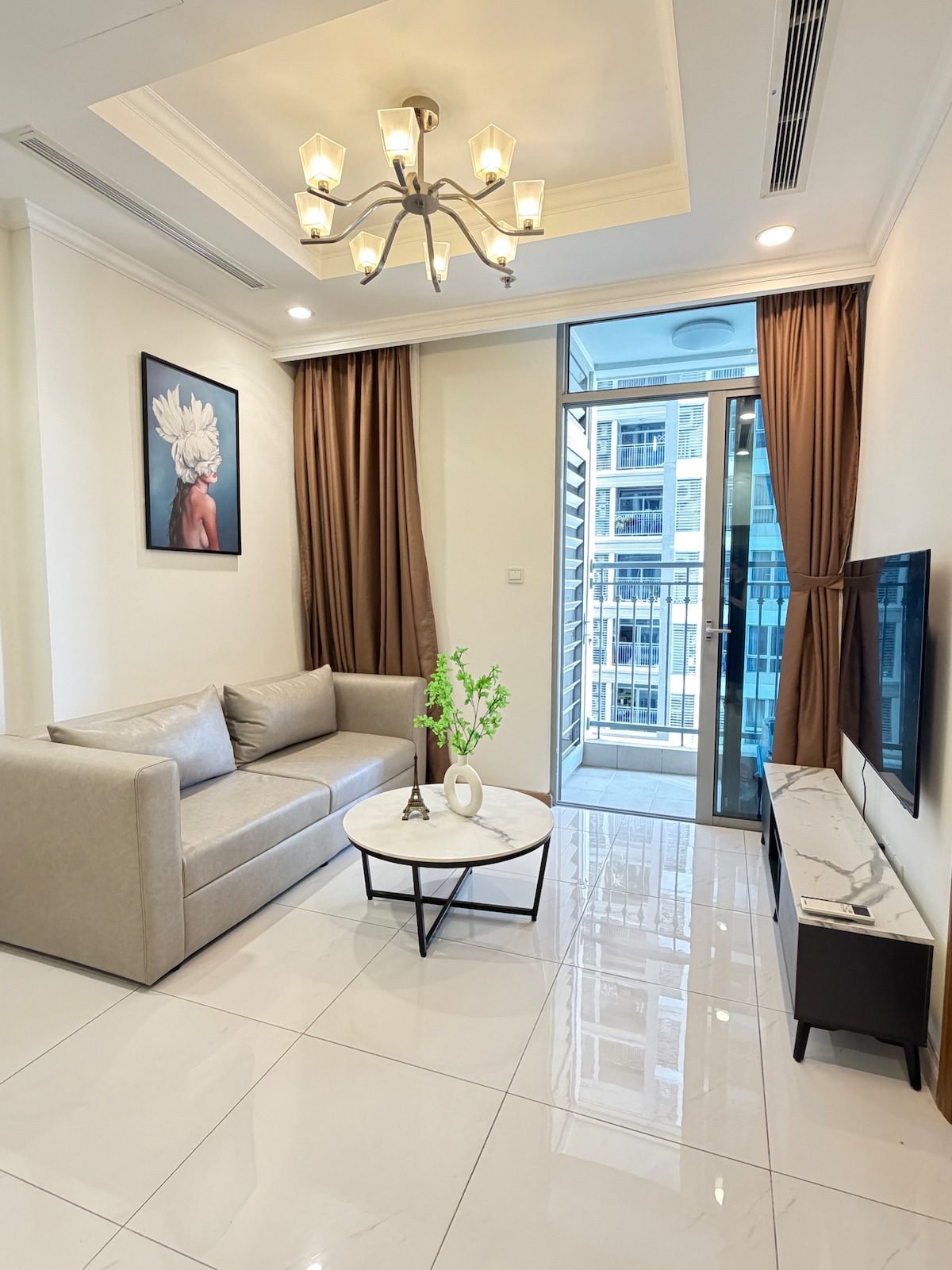 Spacious, stylishly-decorated 1-bedroom apartment on a high floor with a view of the surrounding city and 2 smart TVs. Fully-equipped with wide range of amenities (see photos) unmatched by other apartments in the city, fast customer service until late. Staying with us is the best choice for Guests who value reliability and convenience. Located in Vinhomes Central Park, a high-end area with restaurants, cafes, a mall, and the famous Landmark 81 tower. Just 10-15 minutes to the city center.