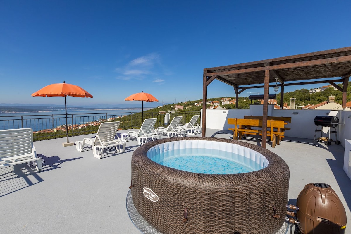 Hideaway Penthouse nestled on a Hilltop, with Breathtaking Sea Views and a Serene shaded Garden area with Lounge space. Private Parking and 15 min walk to Sand beach ☞ 43" OLED Ambilight TV with Netflix ☞ Two Stylish Bathrooms with Luxury shower ☞ Very fast Wi-fi 500 Mb/s ☞ Outdoor Luxury Lounge Area ☞ Backyard Lounge area with special ambience at night ☞ Less than 15 min walk to the beach and the city Send us a message, we would love to hear from you! Or visit: @hideaway_crikvenica