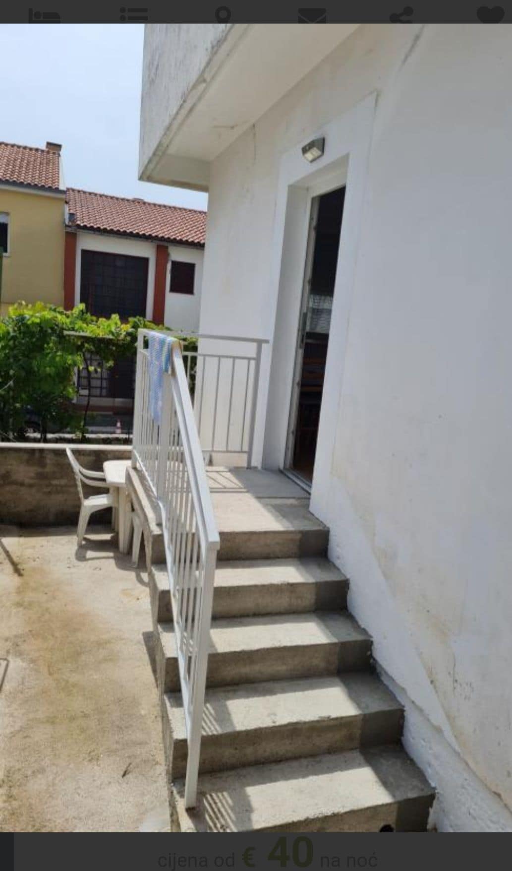 2-bedroom apartment with a covered terrace surrounded with wild Mediterranean garden. You can enjoy being outside all day long because the terrace is covered and shielded from sun and rain. EV charging up to 22kwh speed available on sight for apartment guest (ask for details) Convenient free private reserved parking in front of the house. 800m from the centre of the town and a beach. 1 queen bed, 2 single beds. They are a little bit smaller, so I wouldn’t recommend it for taller persons.