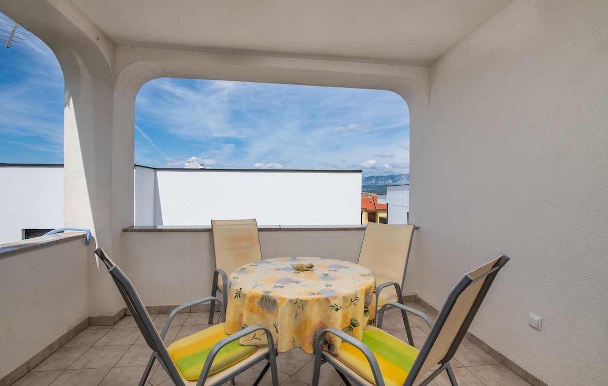 Kompletno opremljen apartman u mirnom predjelu Crikvenice s pogledom na more. Parkiralište u dvorištu objekta, mogućnost korištenja grilla kao i terase uz grill.