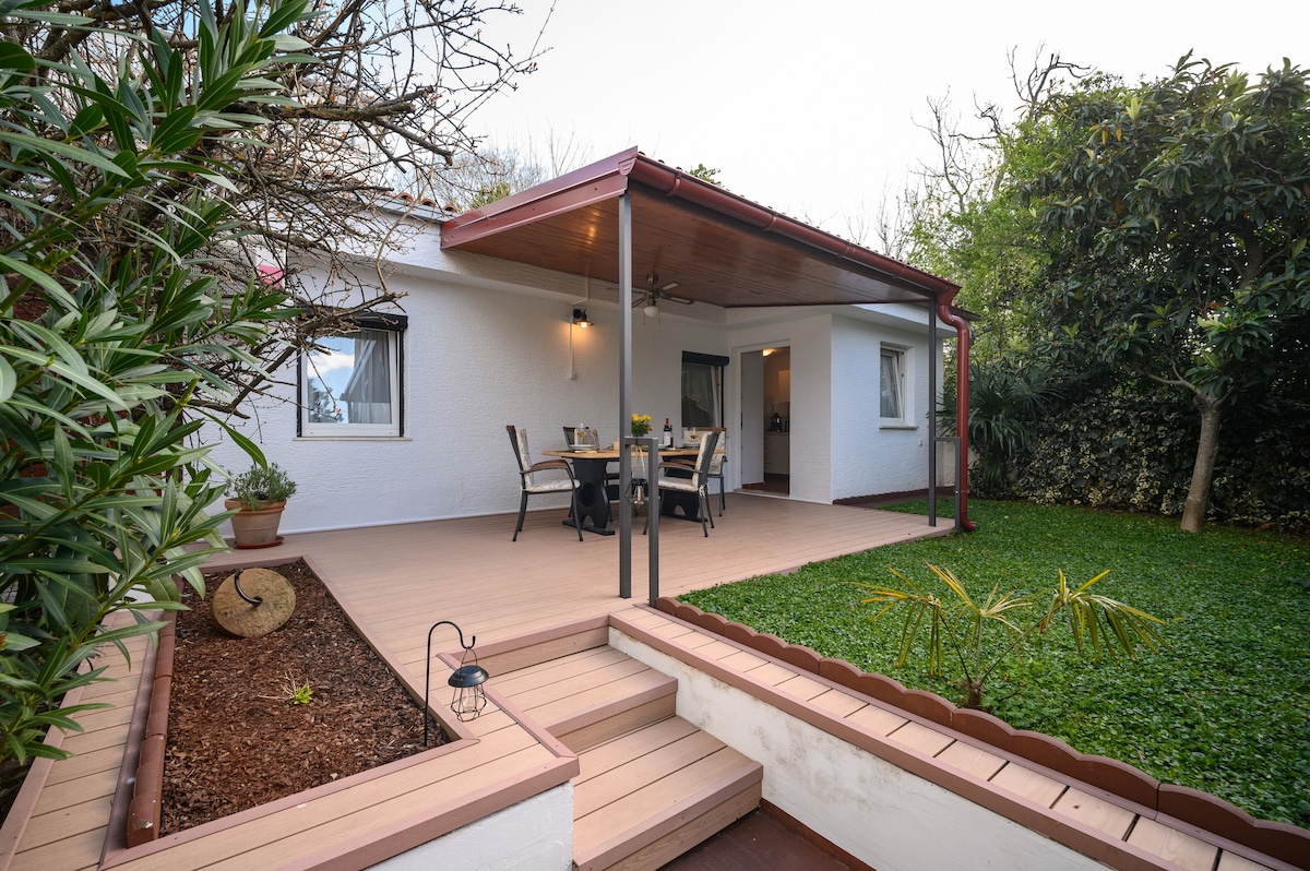 Capacity 2+2, size 42 m2, with a large fenced yard and a swimming pool. Located on the ground floor in a family house in a quiet street; newly built and is fully equipped and furnished. The house is surrounded by trees and offers an unobstructed view of the sea. Pets are not allowed, nor is smoking in the apartment. It is accessible for disabled. Heated pool (May-October) : 8x4m, depth 1,5m. Sat TV, WiFi, A/C, safe, parking, fireplace/grill, terrace, deck chairs and a parasol by the pool.