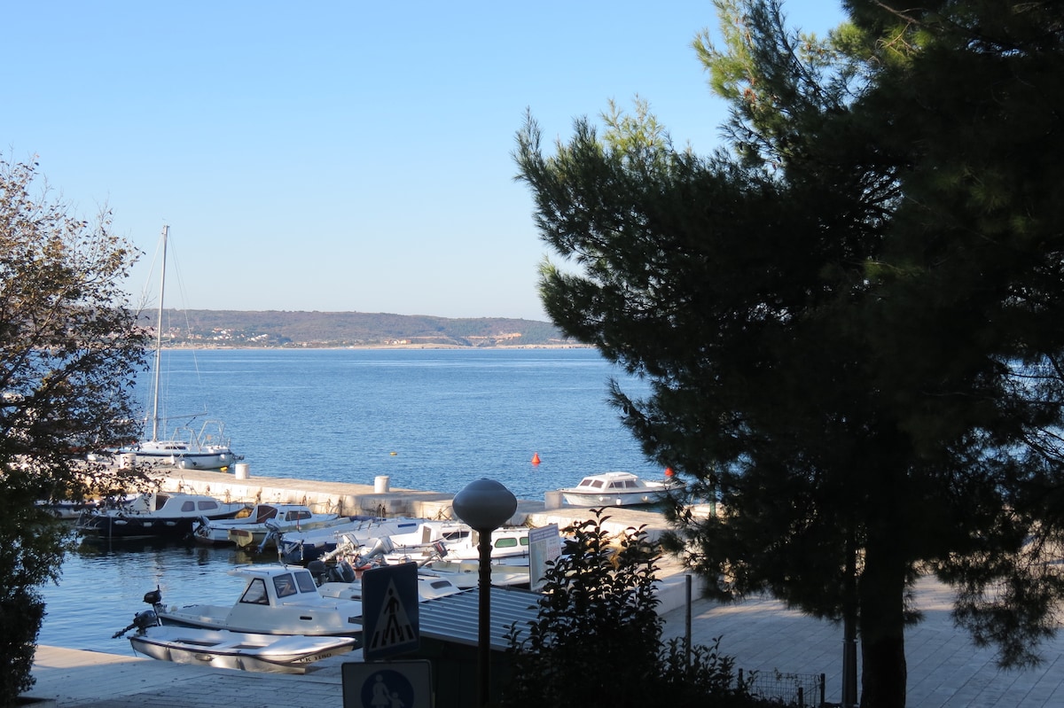 Lijep pogled na more, velike terase sa grillom , 50 m od mora, prostoran stan, morski stil, miran grad, sve blizu u radiju 300 m , bari, restorani, trgovina, igrališta, doktor, pošta...