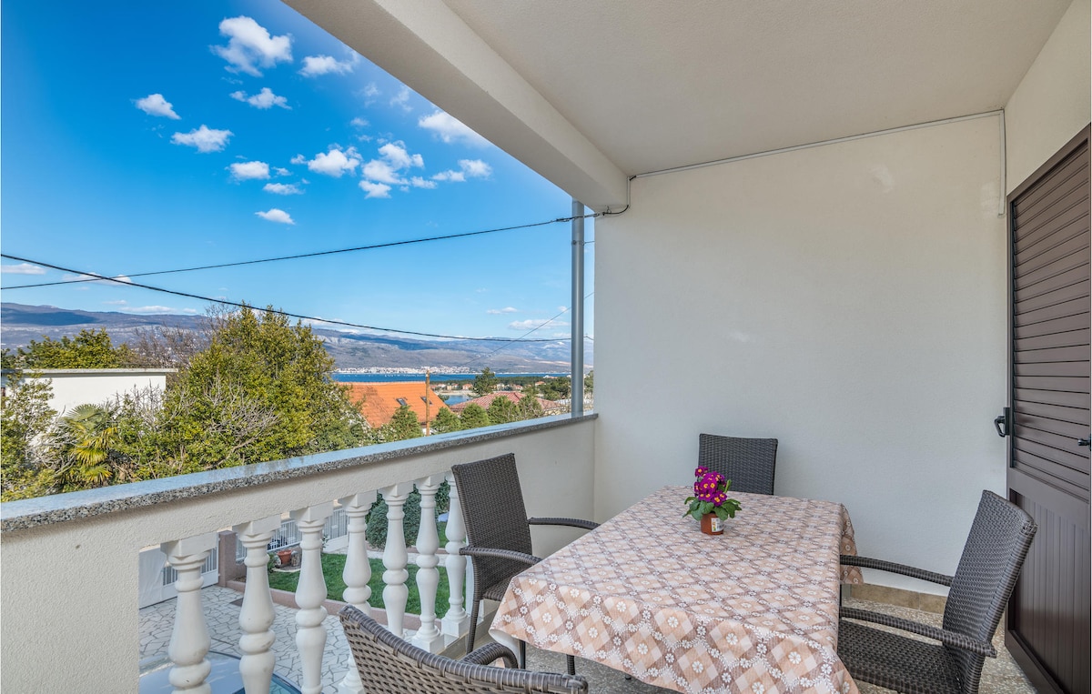 Novouređeni apartman kapaciteta za 4 osobe je moderno opremljen, čine ga spavaća sobe s bračnim krevetom i dodatni bračni krevetom u dnevnom boravku, kuhinja, kupaonica i balkon. Wi-Fi, parking, boravišna pristojba i AC su u cijeni. Pješčana plaža je na 30 sekundi hoda od apartmana, a udaljen je od ostalih plaža, glavne trgovine, pošte, ljekarne i restorana na 5 minuta hoda. Šilo je malo mjesto na istočnoj obali Krka preko puta Crikvenice. Ljeti je gliserom svakodnevno povezan s kopnom.