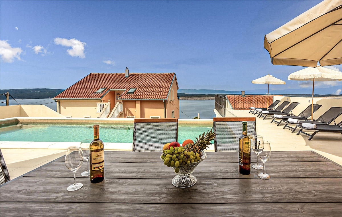 Accommodation is in new modern black and white apartments located in Dramalj near Crikvenica. House is 150 away from the sea and has a breathtaking view of the sea. Enjoy your glass of vine or morning coffe on large balcony and forget all your worries. Our host, Monika, will make sure you have everything you need and will be available at all times during your stay. Wash away all your worries in our pool with jacuzzi. Pool is heated at 28°C.