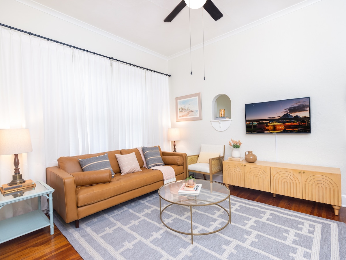 This central St. Petersburg studio features a king-size bed and a spacious, tropically themed outdoor living area—perfect for soaking up the Florida sun or enjoying a quiet evening outdoors with a drink in hand, surrounded by lush greenery. Minutes from downtown, you’ll have easy access to beaches, restaurants, breweries, museums, and nightlife. Ideal for solo travelers or couples, this stylish retreat offers comfort, convenience, and the FL vibe. Book now and experience the best of St. Pete!