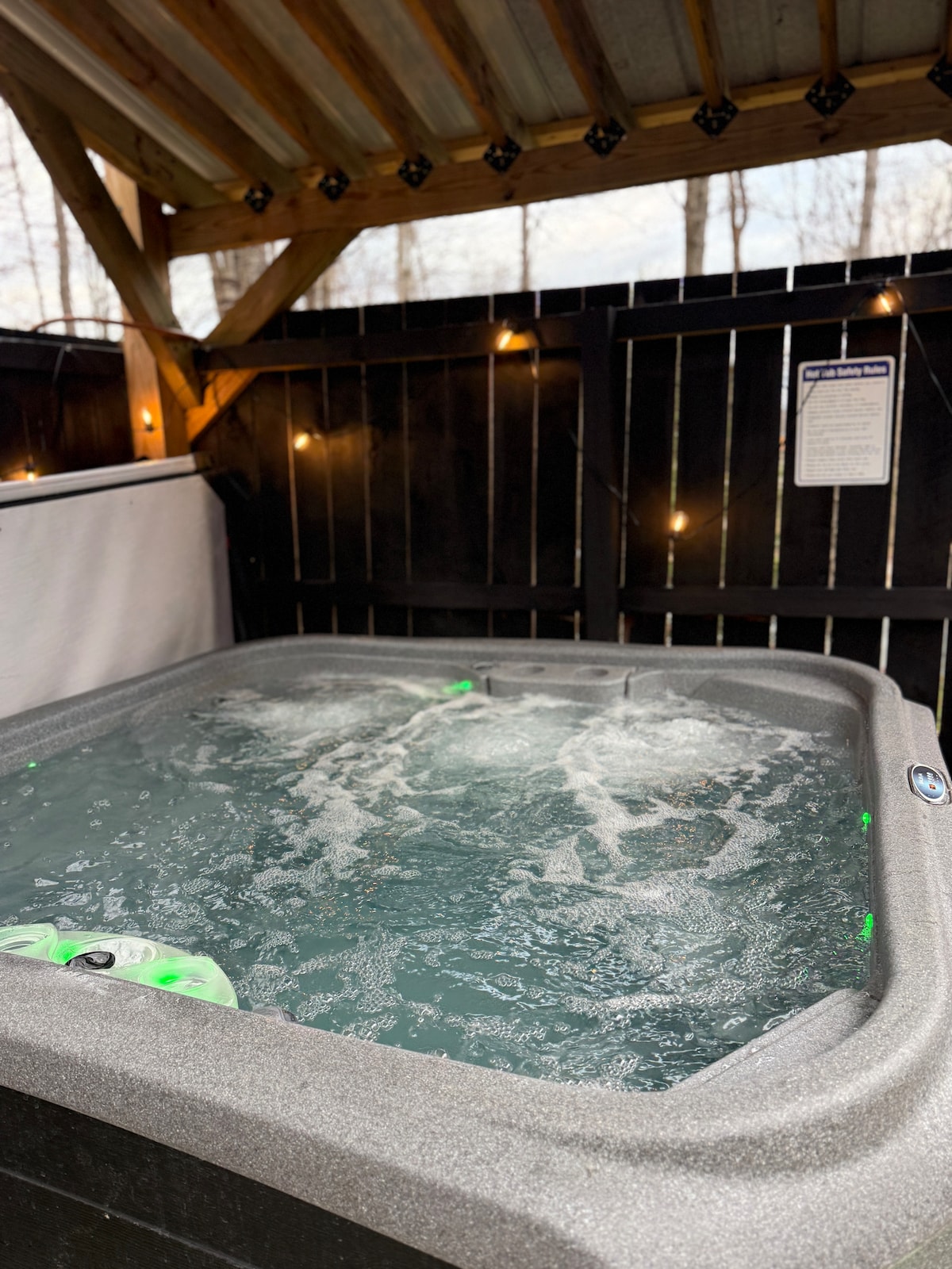 Looking for a great cabin for your next adventure to Hocking Hills? Then look no further. Our cabin is conveniently located just 4 miles from Ash Cave and sits on a private 6-acre lot. We offer an immersive entertainment system featuring a 65 HD TV with a premium sound system and satilite TV. Do you need something to do in your downtime at the cabin? Enjoy one of our many games or puzzles, or let your worries melt away in our relaxing hot tub. We look forward to your stay and we hope you enjoy.