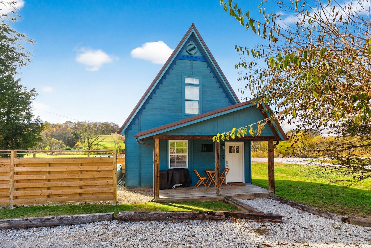 No cleaning fees! It's like a fairy tale! This Amish built barn has been beautifully finished to be the perfect place to relax on your trip. The large, private yard boasts a hot tub, propane grill, picnic table, and fire ring. Inside you'll find multiple easy-to-use electric fireplaces, smart TV, high-speed WiFi, a dedicated work space, coffee bar, and a fully-stocked kitchen all gorgeously decorated. Sleeps 2. Pet friendly.