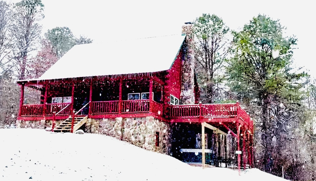 Forget your worries in this spacious and serene space. Come enjoy this cabin centrally located on 90 acres, sitting back on a beautiful stocked pond! Updated in 2021, this is a beautiful place to come and enjoy nature, with all the amenities. You can have breakfast on an upstairs balcony while watching ducks and wild game around the pond. The unique feeling of being tucked away in the hemlock trees just really sets the mood at this unique cabin.