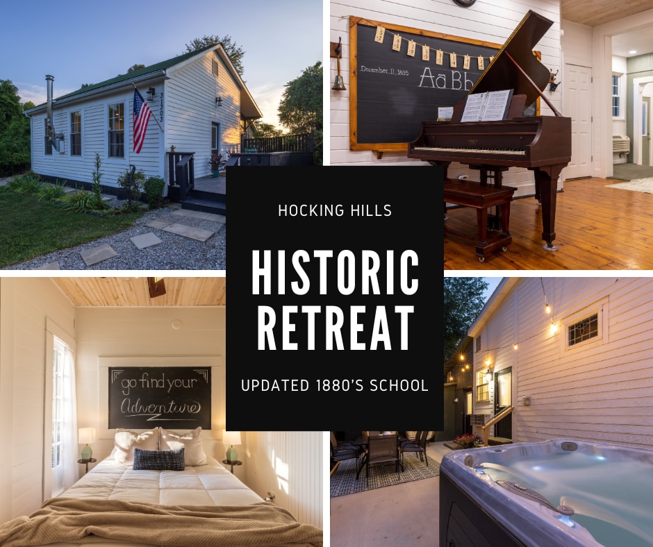 Escape & Unwind at Dunkle Schoolhouse–1880s Retreat in Hocking Hills Craving a peaceful home away from home where you can truly relax, escape the hustle, and recharge with loved ones (or pets!)? This beautifully restored schoolhouse is yours alone—the entire property offers 1314 sq ft of historic charm + modern comfort, free Wi-Fi, easy access off State Hwy 93, hot tub, firepit, 3 bed-3 bath, pet-friendly fenced yard & more—just minutes from Hocking Hills trails & adventures.