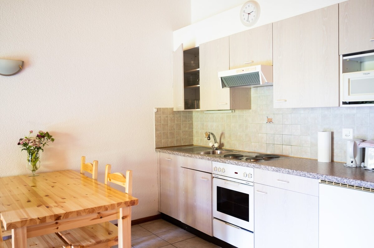 2-Bedrooms Apartment - 50sqm, ground floor with balcony and mountain view.A living room with fitted kitchen and sofa bed (140x200). A bedroom with a double bed (160X190) or 2 single beds (80x190). A second bedroom with a double bed (160x190) or 2 single beds (80x190). Two bathrooms with shower/tub and toilet. Wifi and satellite TV. Maximum capacity: 6 adults OR 5 adults in separate beds. The Reception is situated at 50m at Hotel Le Faucigny, open 24h.