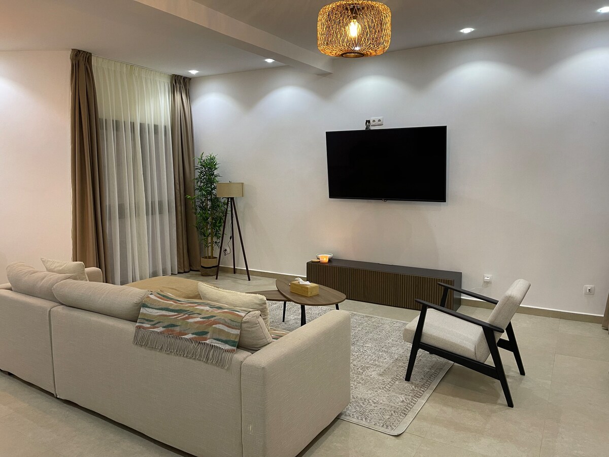 Your stylish, quiet base in Almadies, Dakar’s most desirable neighborhood. This tastefully decorated Sablux luxury apartment pairs modern comforts with a prime, walkable location. The space Bright, serene interiors with a comfortable lounge, dining nook, and a fully equipped kitchen. Air-conditioned bedroom(s) with quality linens, fast Wi-Fi, and smart TV. In-unit washer (or building laundry) and ample storage make longer stays effortless.