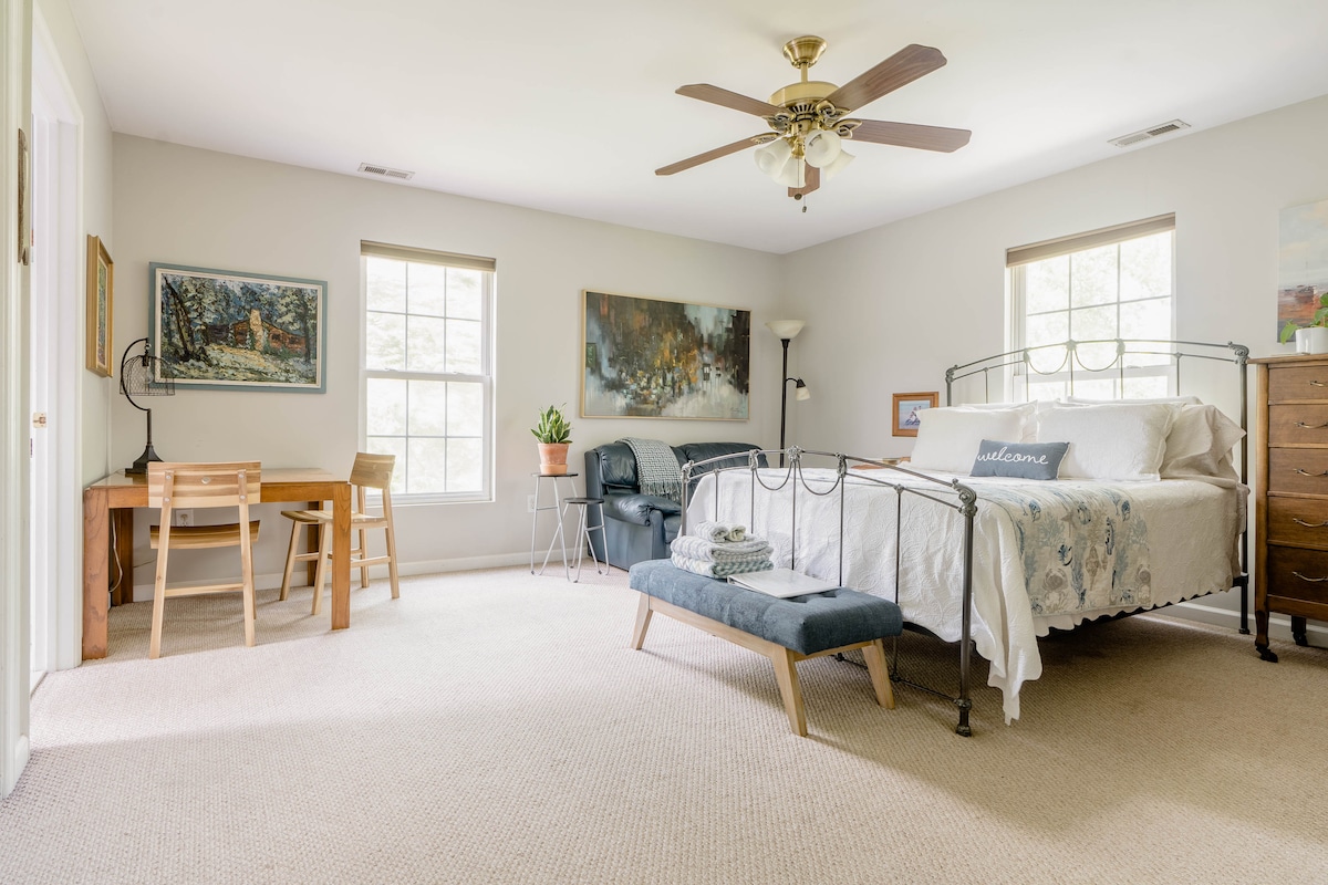 We love welcoming people to our home in the heart of Virginia Beach! Come and go as you please in our guest suite with a separate entrance and privacy latches-no one will enter your space. You will also have the added convenience of having the host family on site. We do our best to provide the comforts of home. -fridge/freezer -beach essentials -toaster -coffee bar -extra essentials We want you to make yourself at home with us. Maybe we’ll enjoy a summer night together on the porch soon!