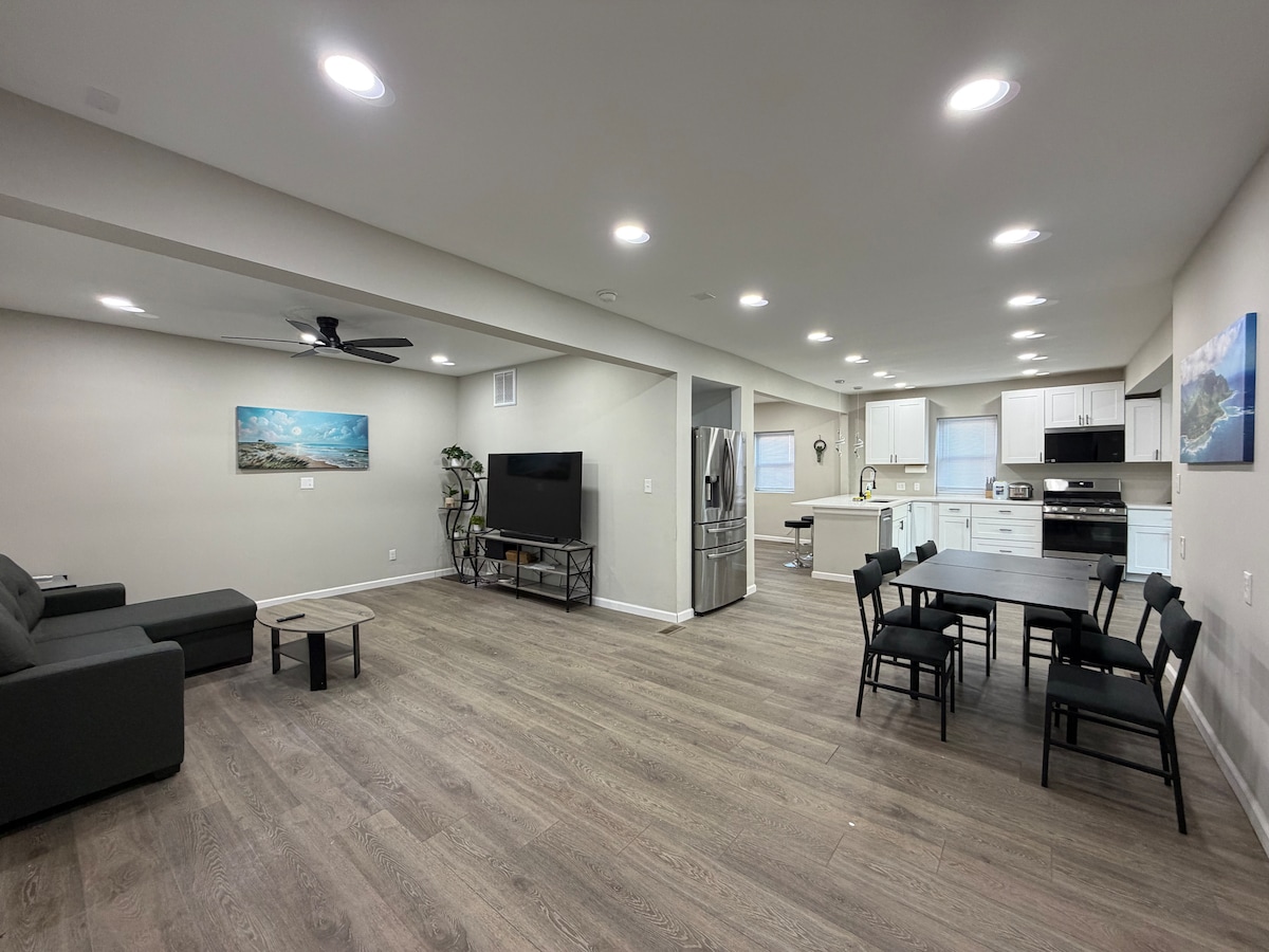 This 3 story town-home (similar to a Duplex House) is the perfect getaway to enjoy a day at the beach! Only 5 minutes walk to the Oceanfront Boardwalk, you can enjoy an evening walk or have dinner at one of hundreds of restaurants in the area. First master bedroom and 2 other rooms are at second floor. Second master bedroom is third floor. Also we provide key less entry for all door inside, outside the house. Beach chair, grill, etc.... also available for you during the time you stay.