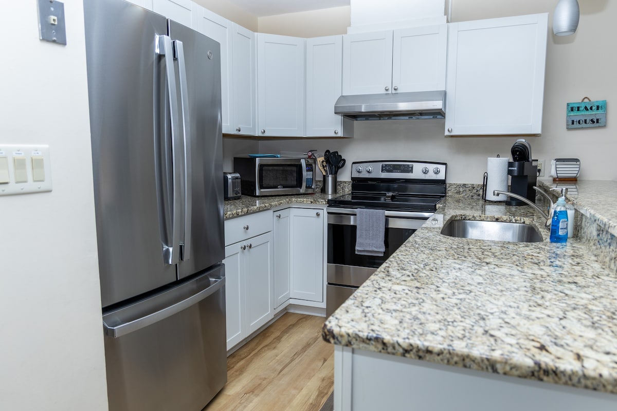 海滩公寓。1.5个街区2海滩。配备便利设施
