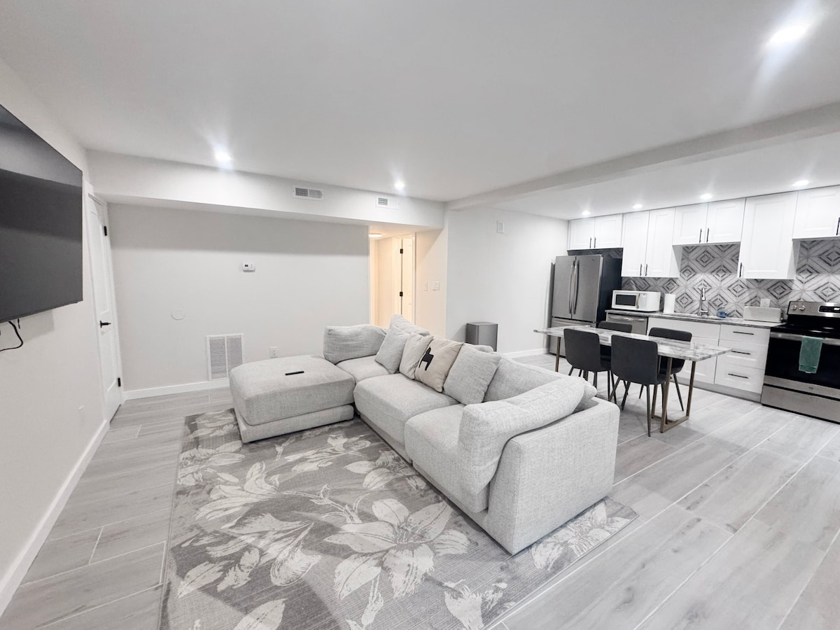 Best vacation spot @ theVirginia Beach Resort Oceanfront. Condo is 1 block from the sandy beaches & lively boardwalk! Right next to inlet offering boat tours, fishing, surfing, biking, restaurants & souvenir shops! Renovated condo accommodates 4 adults comfortably. 1 bedroom featuring a Queen size IKEA storage bed, fully stocked kitchen, pull out queen size IKEA sofa bed in living room, 2 smart TVs & WiFi. Located on 2nd floor so you will have steps to walk up. Boardwalk, beach, shopping & food!