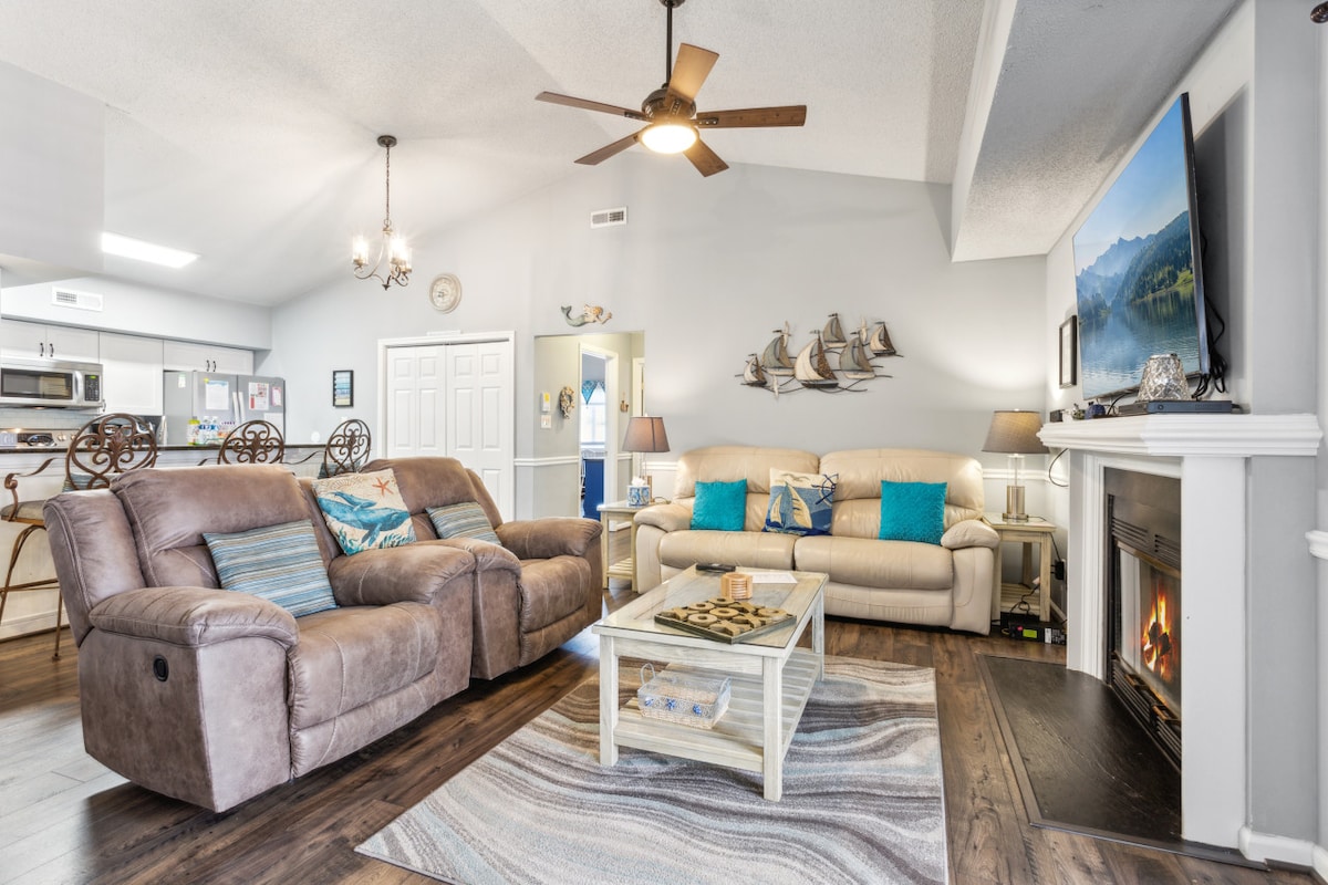 Unwind at this gorgeous fully renovated getaway for your family and friends! This two bedroom, one bath beach home is one block from the ocean. This unit accommodates up to 4 adults. Each room is equipped with a smart TV and internet is provided. Our kitchen provides refrigerator, microwave, oven, dishwasher, toaster, Keurig, dishes, cutlery, bowls, pots and pans, and much more! Steps away from shopping and restaurants! This highly sought after vacation spot really is a home away from home.