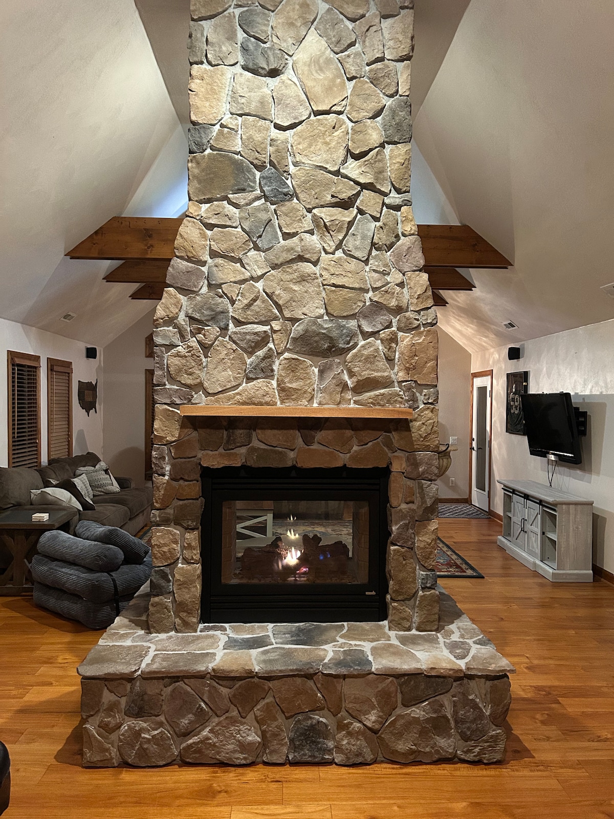 Relax at this tranquil country retreat! This 1,100 sq ft loft sits above a garage behind the main Country Escape rental. The deck overlooks a wooded, park-like yard, giving it a cozy treehouse feel. Thoughtful décor and repurposed doors (the inspiration for its name, “Next Door”) create a welcoming space. Perfect for unwinding and recharging while still close to local attractions.