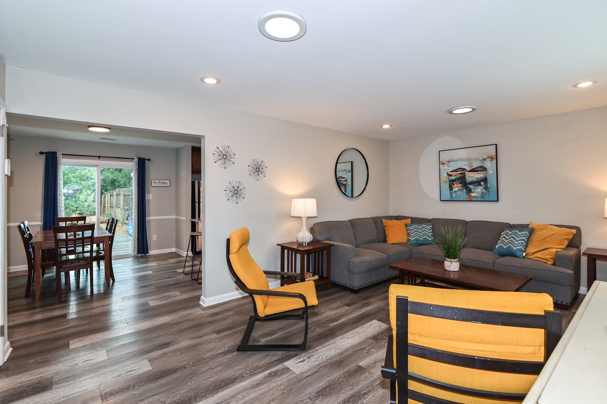 Welcome to your vacation getaway! This remodeled 3-bedroom, 2.5-bath ranch house is just a mile away from the ocean front. It's an ideal destination for families, friends & pets. All bedrooms have queen beds and smart tvs. Pet-Friendly (fee)The spacious backyard and deck are perfect for playtime and relaxation. Great location close to shopping and restaurants. You’ll feel right at home in this safe neighborhood. Please note: No parties. Only 9 people are allowed at the house at any time
