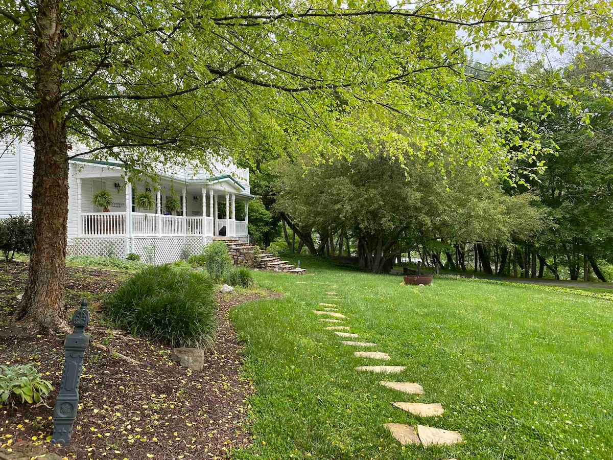 **Remodel underway! New pics coming soon** This historic, yet modern & updated, 1900's farmhouse is located on Beaver Dam Avenue, directly across from the Virginia National Creeper Trail and Laurel Creek, and just a five minute walk to the heart of downtown Damascus. Enjoy exceptional convenience with no direct neighbors! The cozy home and GIANT fully fenced yard are family friendly and dog friendly - see our pet policy in 'House Rules'. Professionally cleaned between every stay.