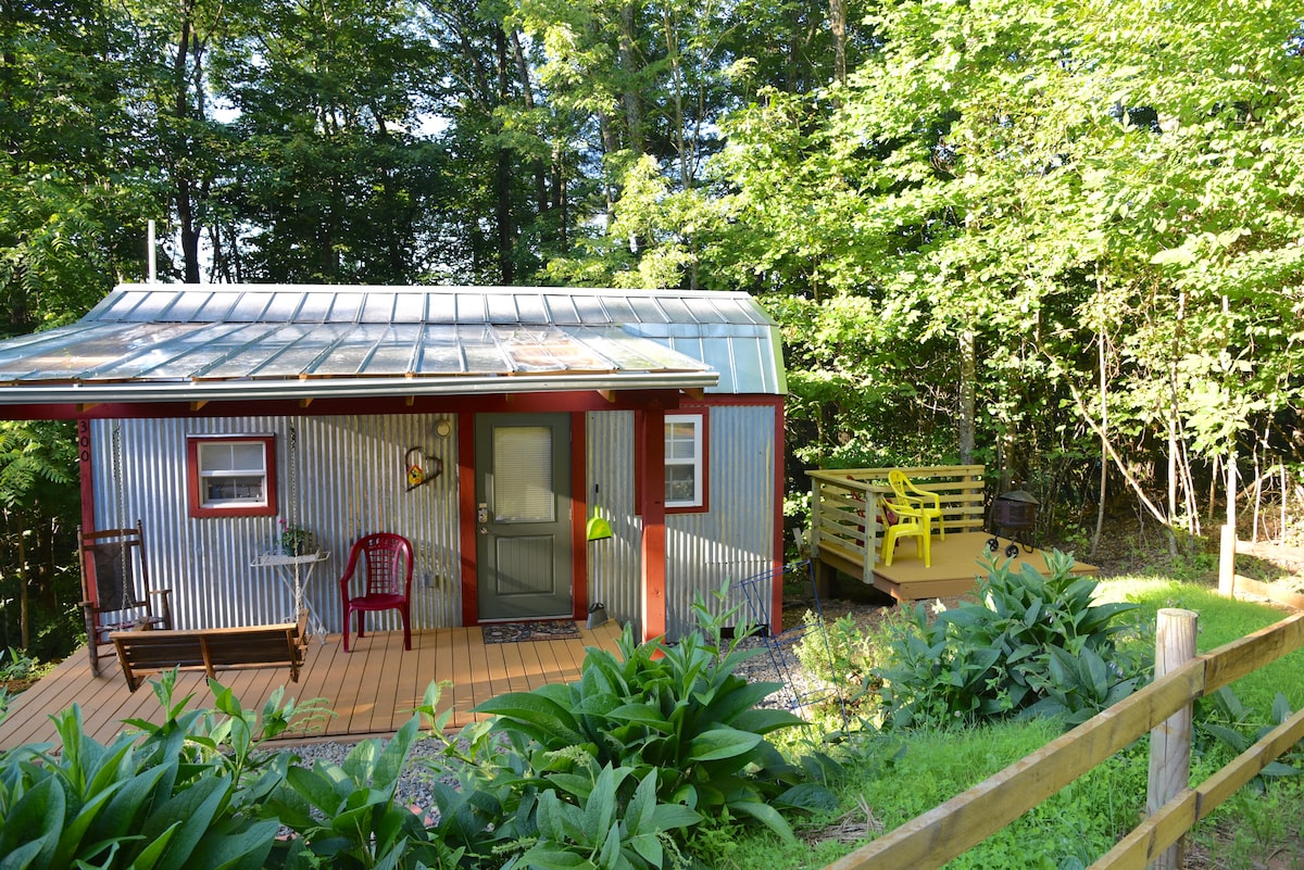 Our tiny house is beautifully appointed with everything you need to live (and work!) in luxury two miles from the Blue Ridge Parkway and two miles from downtown Floyd, VA. Sleep soundly on the queen sized mattress topped with 4" memory foam. Cook your gourmet meals in the fully equipped kitchen—(we provide welcome mini loaf, organic coffee, half and half, sugar, rolled oats, olive oil, salt, pepper, and cinnamon.) Spend the evening enjoying a campfire or relax on the porch swing.