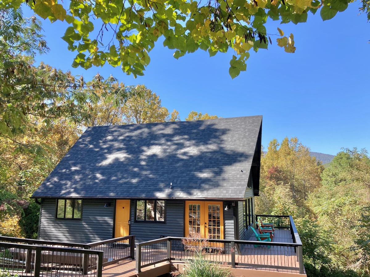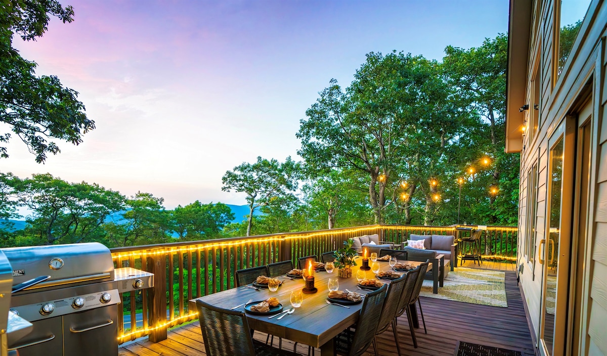 New luxury Chalet with the best breathtaking views in all of Shenandoah. Hike right into Shenandoah National park, the Appalachian trail, and waterfalls! High speed internet, comfortable lounging sofa, smart TV, stocked kitchen, fire pit, washer/dryer, Weber grill, and a large deck with incredible views. Three bedrooms with queen beds, two bathrooms, open living and dining areas. Family and pet friendly. Book with confidence, Superhost with 1,100+ Five Star reviews.