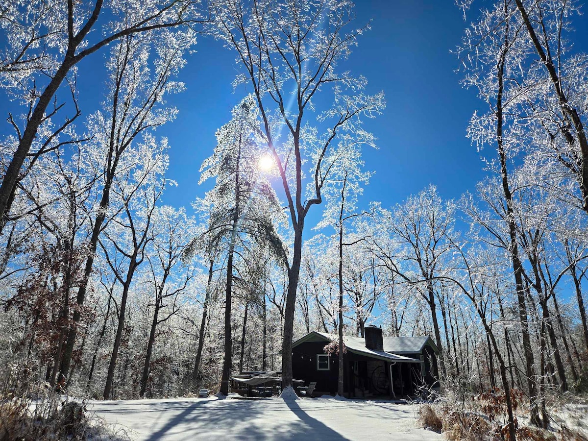Escape to our modern cabin on 12 private acres. Unwind in the wood-burning hot tub, embracing the surroundings and stars at night. With a contemporary design and natural light, this retreat blends with nature. Explore private trails throughout the property, enjoying nature and the fresh air. Inside, find comfort in the fully equipped kitchen and cozy living area. Perfect for a peaceful getaway, our secluded home provides privacy and relaxation.