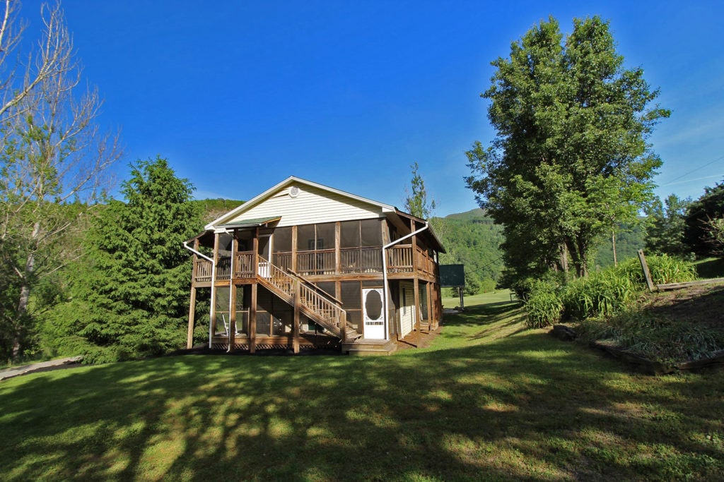 Oracle Guest House is a custom, 4-bedroom lodge with a breathtaking view of the New River in Independence, VA. The house features a fully stocked country kitchen, large family room, laundry, WIFI, TV, and wrap-around deck with grill. Our 22-acre campus extends to the New River, allowing for onsite fishing, swimming, and kayaking. The Master King Suite has a jacuzzi and is located on the main floor with private access to the deck.