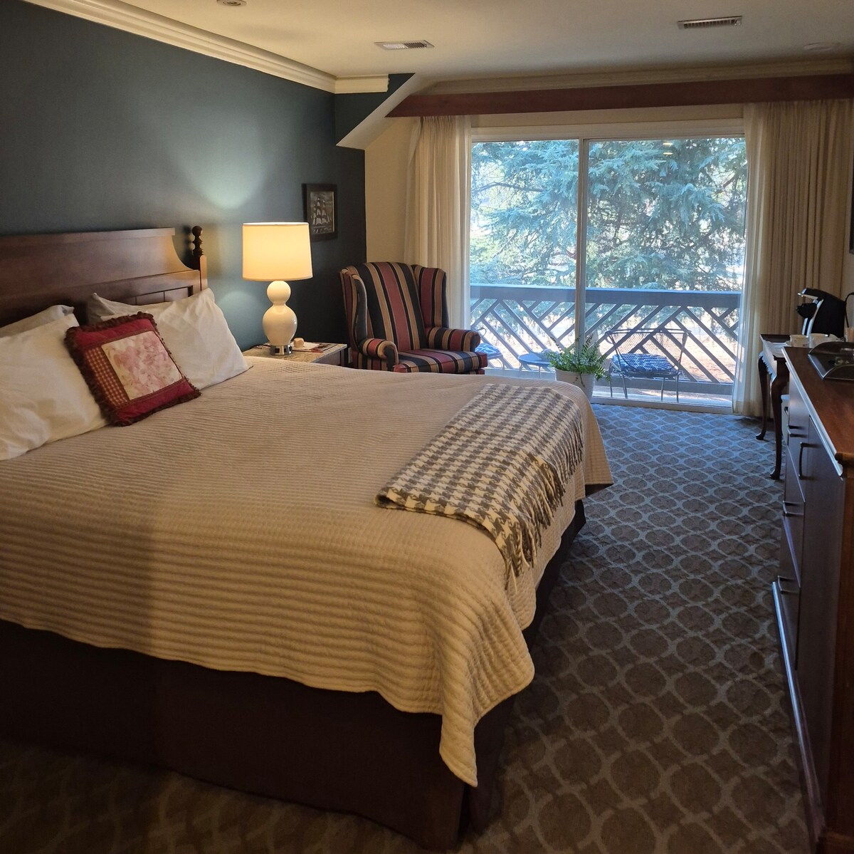 Enjoy this stylish room furnished with a comfortable King bed . Amenities include a private bath, mini fridge and Keurig coffee. Relax sipping coffee on the private porch overlooking the 9th Fairway of the famous River Course. A swimming pool on-site is available in season. Our unit is not enrolled in the Kingsmill Resort Program. The private club amenities such as golf & sports center are not available. You will have access to "The Mill" Coffee shop , The SPA and Marina/Beach areas.