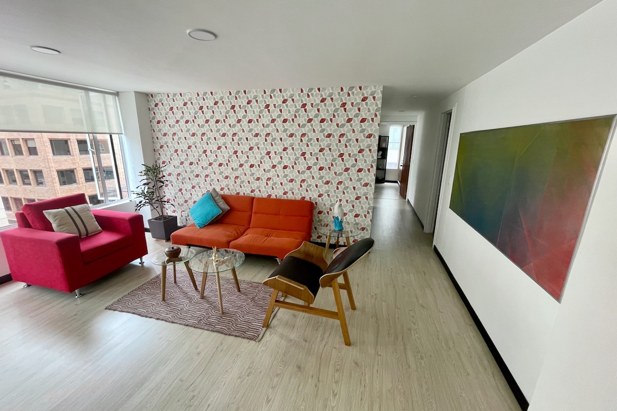 A 5-star✩ Condo in Bogota's Best Location! Right across the street from the DoubleTree Hilton! This beautiful property offers the ultimate in luxury accommodations. Walking distance to some of Bogota's hottest spots, including Parque 93 and Gaira Café. Near Zona T, famous-for-restaurants Zona G, great shopping and nightlife! Our location makes it easy to discover the best of what Bogota has to offer! A diverse and multicultural metropolis, with a blend of modern and colonial architecture