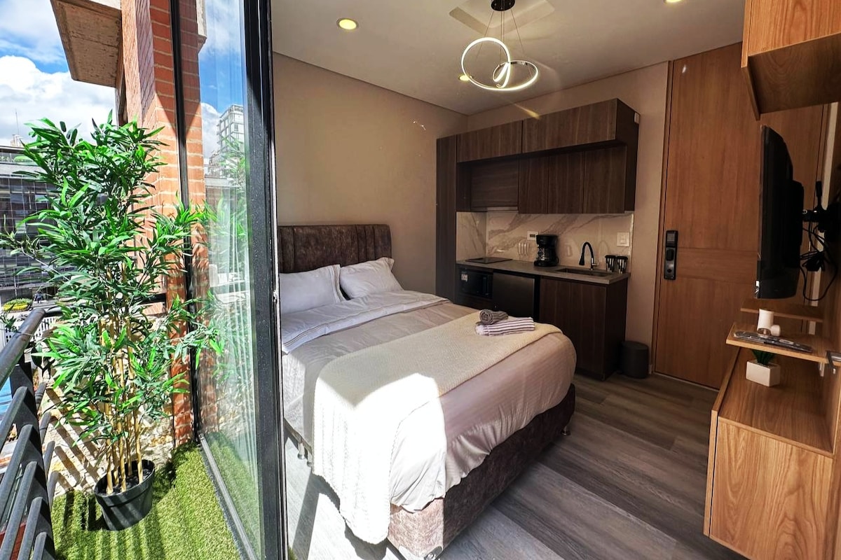 Welcome to this charming studio apartmento located in the heart of the city, ideal for those looking for a cozy, quiet and relaxing space. This apartment has been carefully designed to give you the feeling of being in a true "kuiyque" which means refuge in the Chibcha language, where you can get away from the hustle and bustle of the city and find a space of peace and calm.