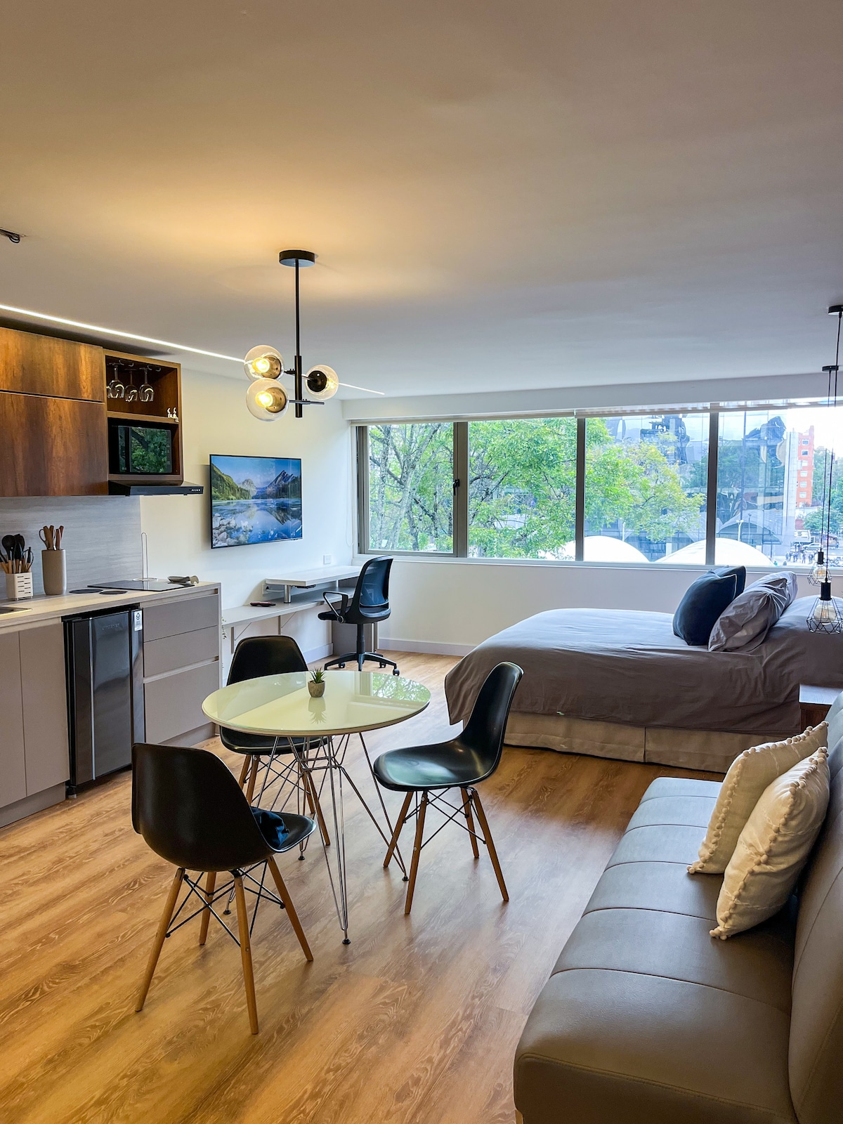 Explore Bogota and discover the best it has to offer from this cozy loft Enjoy nature and tranquility having a walk at Parque el Virrey, get to know Colombia’s top shopping spots at Andino/Retiro/Atlantis malls, and end the day with an exquisite dinner or some drinks in any of the top-tier bars and restaurants around. All within walking distance! Clínica del Country medical cluster is located just across 85th street… So whether you travel for work, leisure, or medical, this is the place to be!