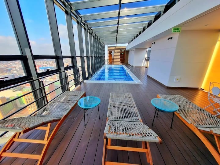 Increible Apt 1BR VISTA, PlSCINA cerca zona G y T