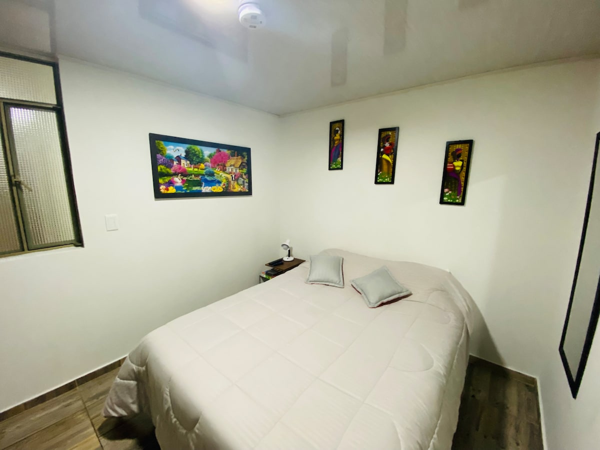 Apartamento moderno, acogedor y totalmente dotado en una ubicación central y estratégica en Bogotá. Perfecto para viajes de negocios, turismo, pareja o amigos que busquen alojarse en un lugar central. A dos cuadras del parque de la 93, cerca a restaurantes, centros comerciales y lugares de interés. El espacio cuenta con todo lo que necesitas: internet, cocina equipada, baño con diseño moderno, sala de estar acogedora, exterior y un cómodo dormitorio.
