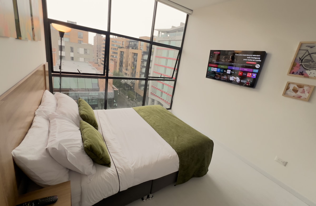 Apartamento Entero con buena Ubicación y Central, con Internet de Alta Velocidad y Servicios Incluidos. Este Apartamento dispone de 1 Cama Doble, 1 Smart TV, Cocina con Nevera y Horno Completamente Dotada, 1 Baño con Hidroducha. La Recepción funciona 24/7, el personal habla Inglés y Español. Cerca a Andino Mall, Parque 93, Parque Virrey, Embajadas España, ONU, Museo El Chico, el Aeropuerto se encuentra a 13 Km Con Ubicación estrategia, será muy fácil planear tu visita