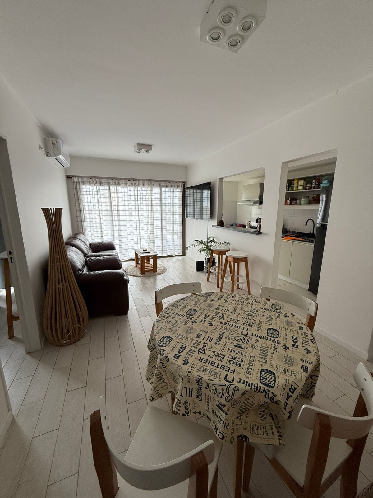 El departamento tiene dos ambientes con cochera descubierta en el edificio. Es acogedor y tranquilo, con grandes ventanales que llenan de luz y verde. En el living hay un smart tv de 42’ y conexión wifi. La cocina está bien equipada. El dormitorio es amplio, con cama doble y placard en el pasillo, el baño tiene bañera. El balcón arreglado con plantas y una pequeña mesa con sillas invitan a relajarse tomando un bebida. Sábanas y toallas. La Pileta tiene deck con reposeras , es de uso común.