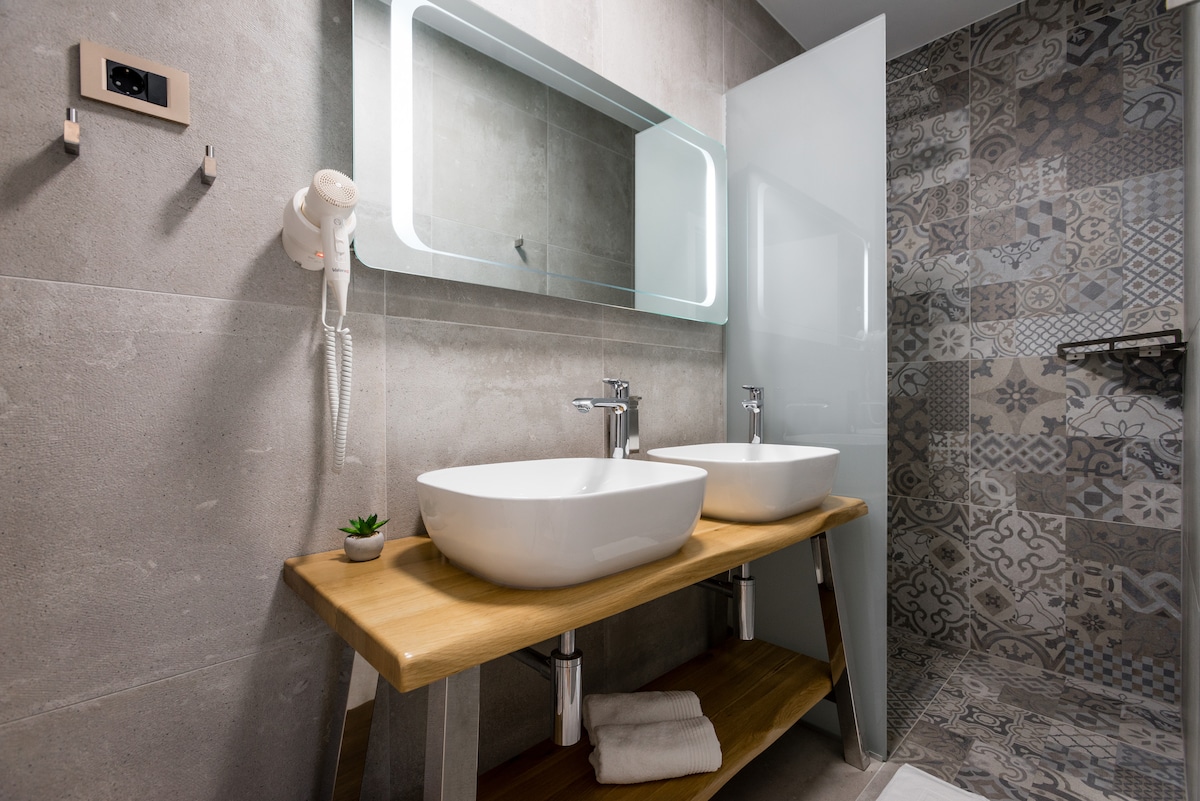 Our resort is one of a kind, unique place located in Hvar, just 900 meters from city center, and only 400 meters from beach. It has an original interior, spacious rooms with terraces, 2 pools with massage, relaxing and sunbathing area with automatize