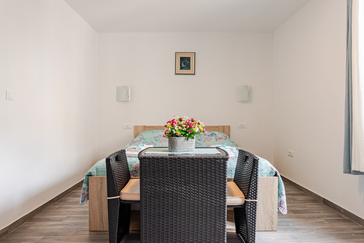 Just a few steps from the sea and the beach, there is a ‘Porpini’ apartment. From the small terrace you can enjoy the wide view across the sea, while sunbathing, listening to the soothing sound of the waves or simply relax, in the shade, with the glass of a cool drink. This small and cosy studio apartment has everything you need for your vacation. Equipped kitchen, TV, air-condo. Apartment provides a romantic sunset on the landing at the top of stairs - for you only, and free of charge ;)