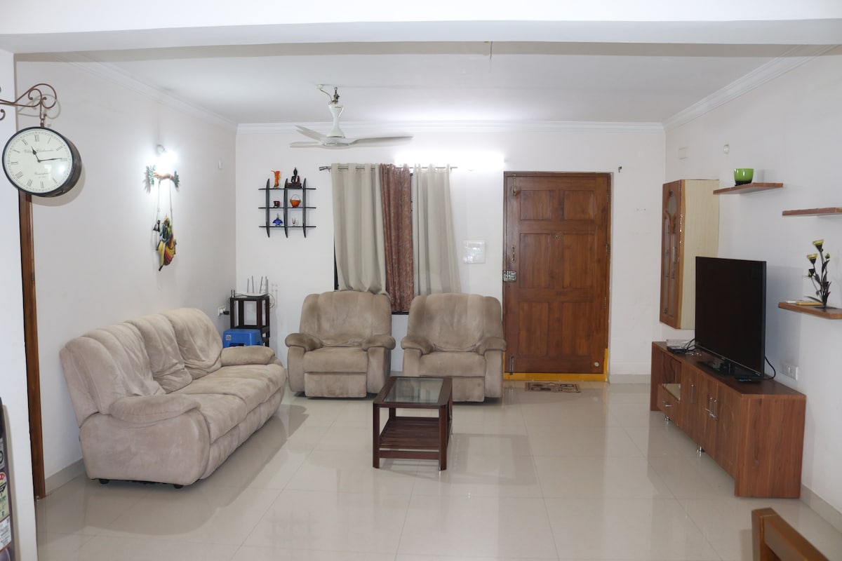 🏡 Escape to a peaceful and comfortable 3-BHK apartment. Ideal for families, couples, friends or business travelers, this spacious home combines modern amenities with convenient access to the heart of Visakhapatnam. Located in a quiet neighborhood at Madhurawada, you’re close to beaches, IT-sector hubs and access to public transport — a perfect base to explore or relax.