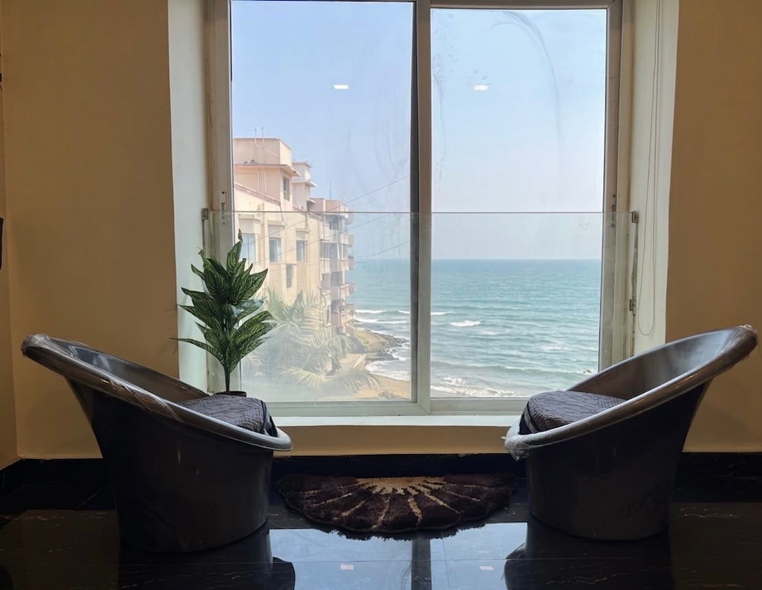 Wake up to Breathtaking Views of the Ocean shore. This Spacious Property is located very close to Rushikonda Beach(5 min drive) in Vizag. A truly Worthy stay. This is 3 Bed room flat with Air Conditioning King sized bedrooms, Spacious Equipped Kitchen, Premium Living Hall with Lavish Beach View from Hall/Sit-out Patio and side bedrooms.