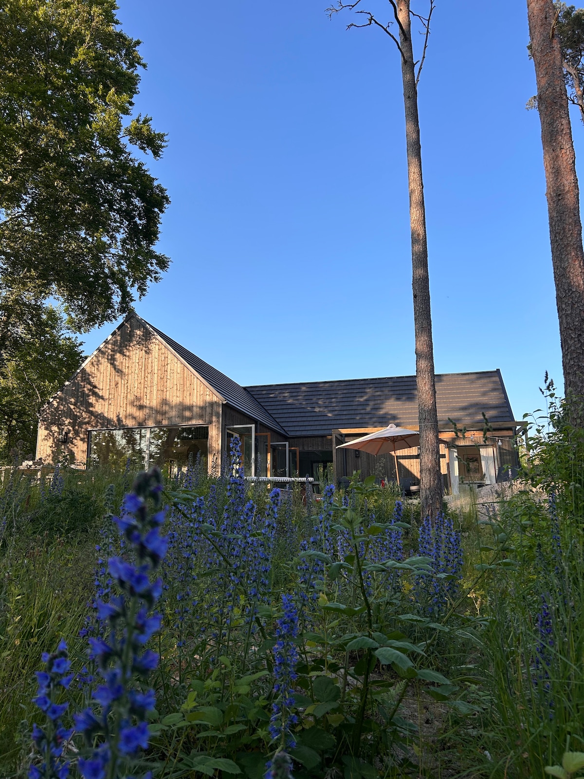 Nytt designhus bara 150 meter från Tofta Strands fantastiska sanddyner. Perfekt för strandsemester. Rör er fritt mellan hus, trädgård och strand utan att släpa med grejer eller planera. Öppet till nock, luftigt och minimalistisk härlig känsla. Stort kök och bra umgängesytor inne och ute. Fem sovrum. Ritat och byggt för storfamiljen, två familjer, golf/cykelgänget eller retreat-helgen. Tre minuters promenad till sanddyner och strand. Fantastiska kvällspromenader i solnedgången st
