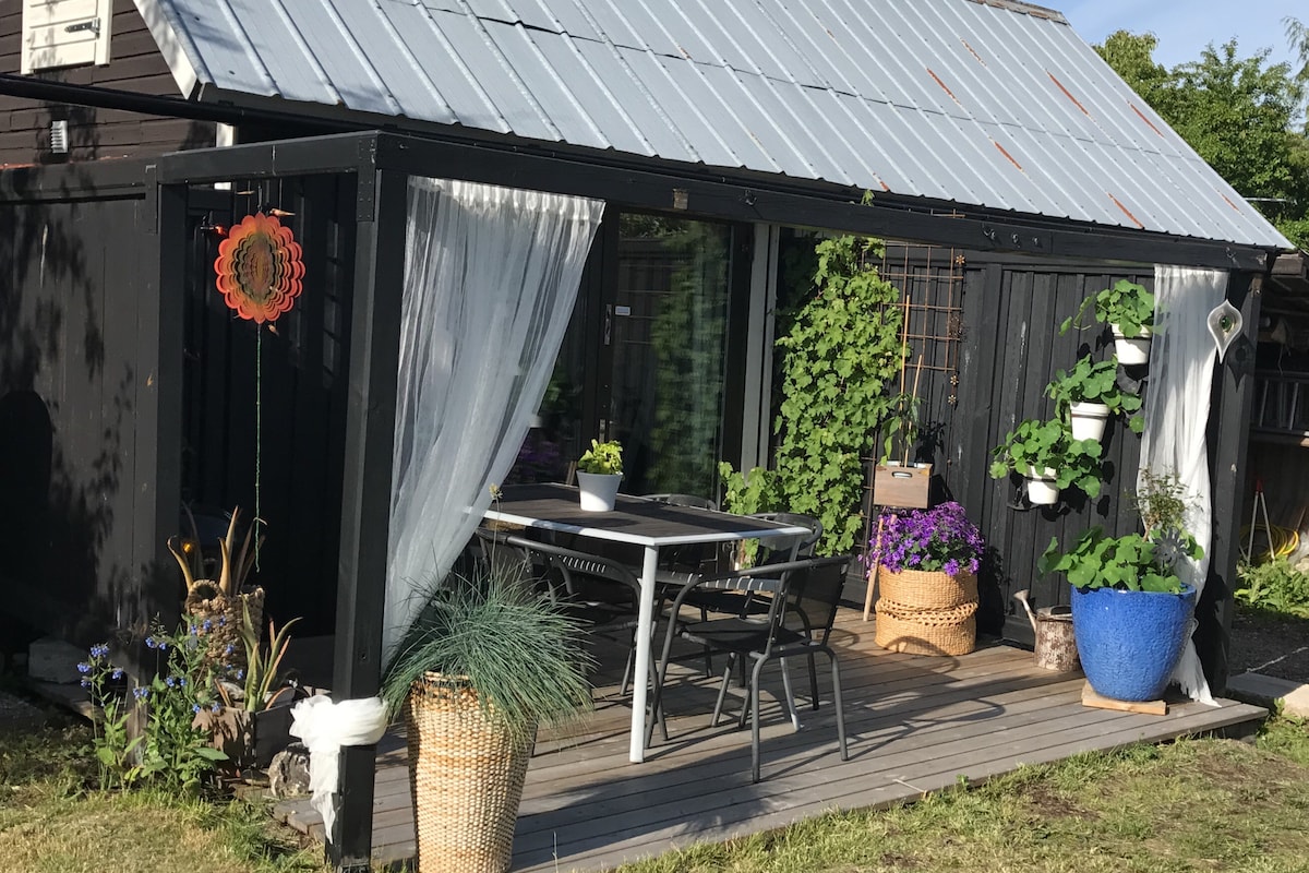 Modern accommodation within walking distance (15-20 min) of Visby center and inner city. The house is located in a quiet and cozy residential area from the 30s in the east part of the city. Bathroom, kitchenette , a bedroom and a larger living room. The house is 38 sqm.