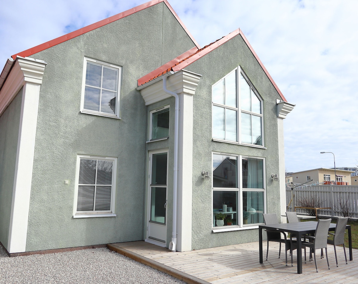 Charming 18th-century house in the heart of Visby. Quietly located near the main square, the cathedral, and the botanical garden. The house is bright and thoughtfully restored with natural materials like wooden floors, Gotland limestone, and linseed oil paints—blending historic charm with modern comfort. Includes access to part of the garden and a private, furnished patio—perfect for morning coffee or evening relaxation.