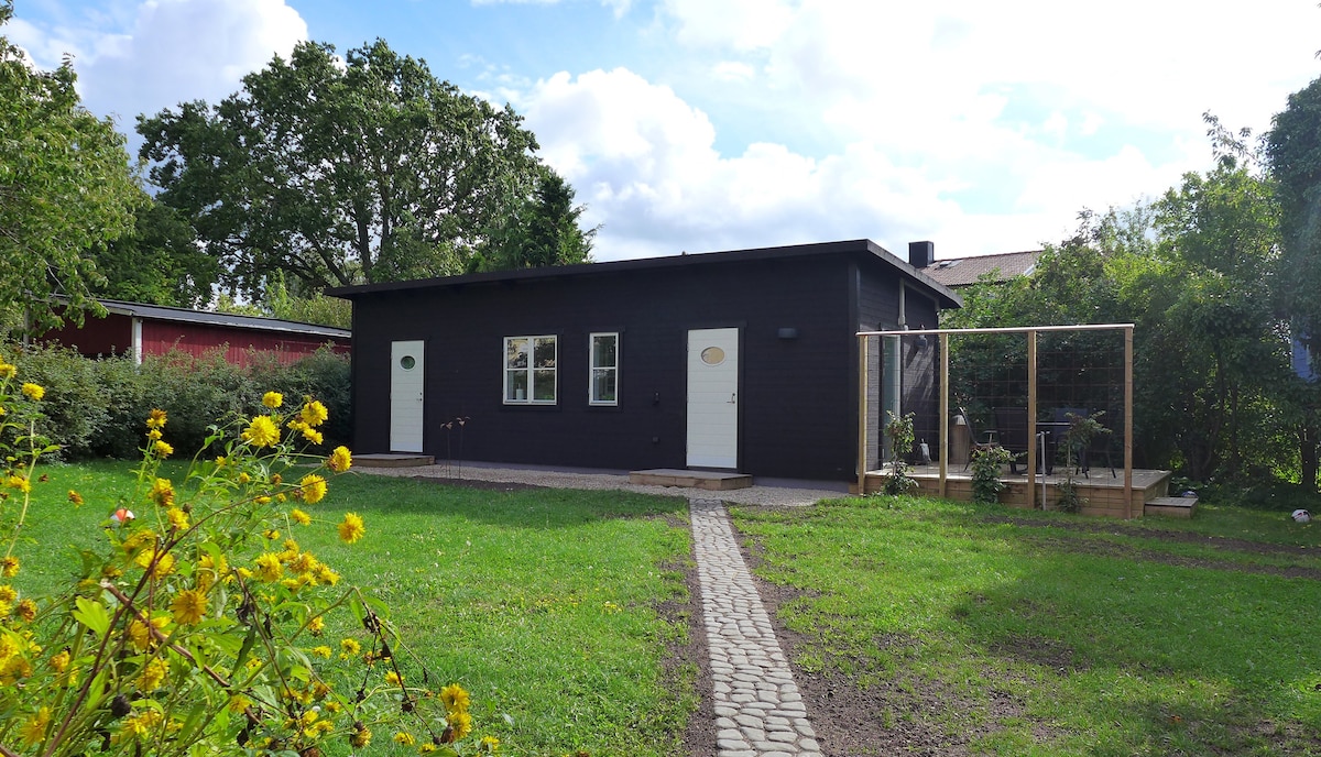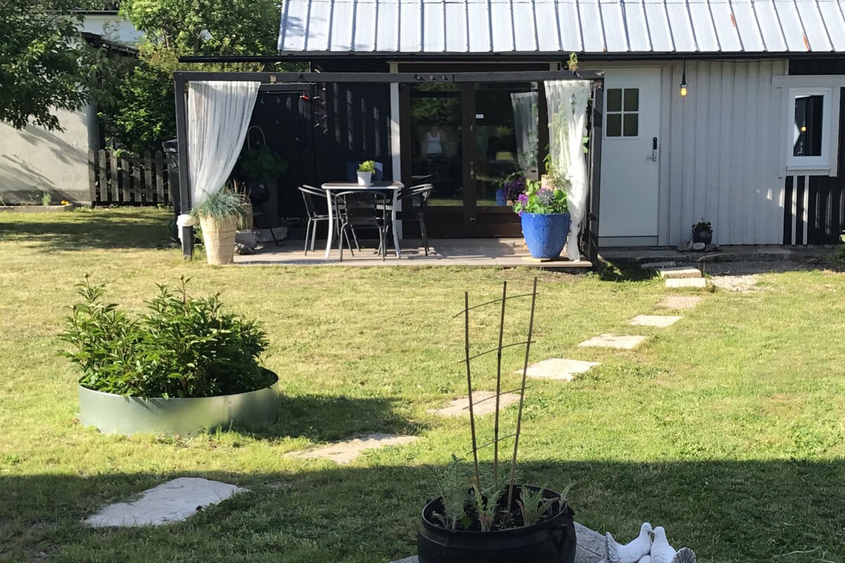 Modern accommodation within walking distance (15-20 min) of Visby center and inner city. The house is located in a quiet and cozy residential area from the 30s in the east part of the city. Bathroom, kitchenette , a bedroom and a larger living room. The house is 38 sqm.