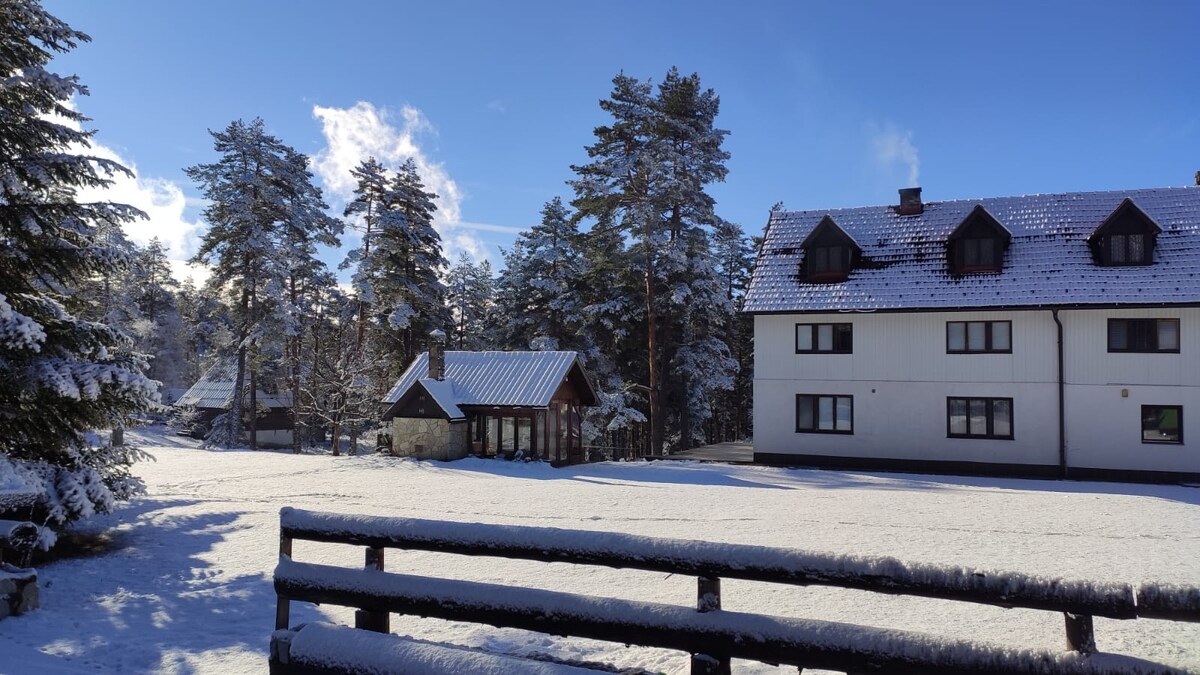 Cave Apartment is part of a two-story house built in 1958 and fully reimagined in 2016. Set in the pine woods of Tara National Park, it’s part of our community mountain space, with a small bar serving local food just outside your door. While it’s peaceful, it’s not remote—this is a lived-in space, where people gather, rest, and enjoy the mountain vibe.