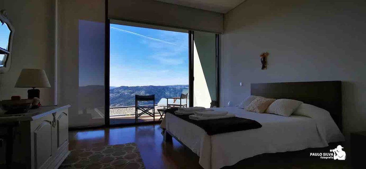 Located in the heart of Portugal's wine country. Enjoy a modern 3 bedroom villa with stunning views overlooking the rocky vineyards of the Douro Valley. Feel refreshed with the natural cool swimming pool and outdoor shower. Relax on the exquisite patio and enjoy the peaceful surroundings. Fast Starlink internet, wood-burning fireplace, Gas BBQ and beautiful views. Only a 3 minute drive to the famous DOC restaurant. Interested in wine tasting and tours? Let us know and we're happy to help!