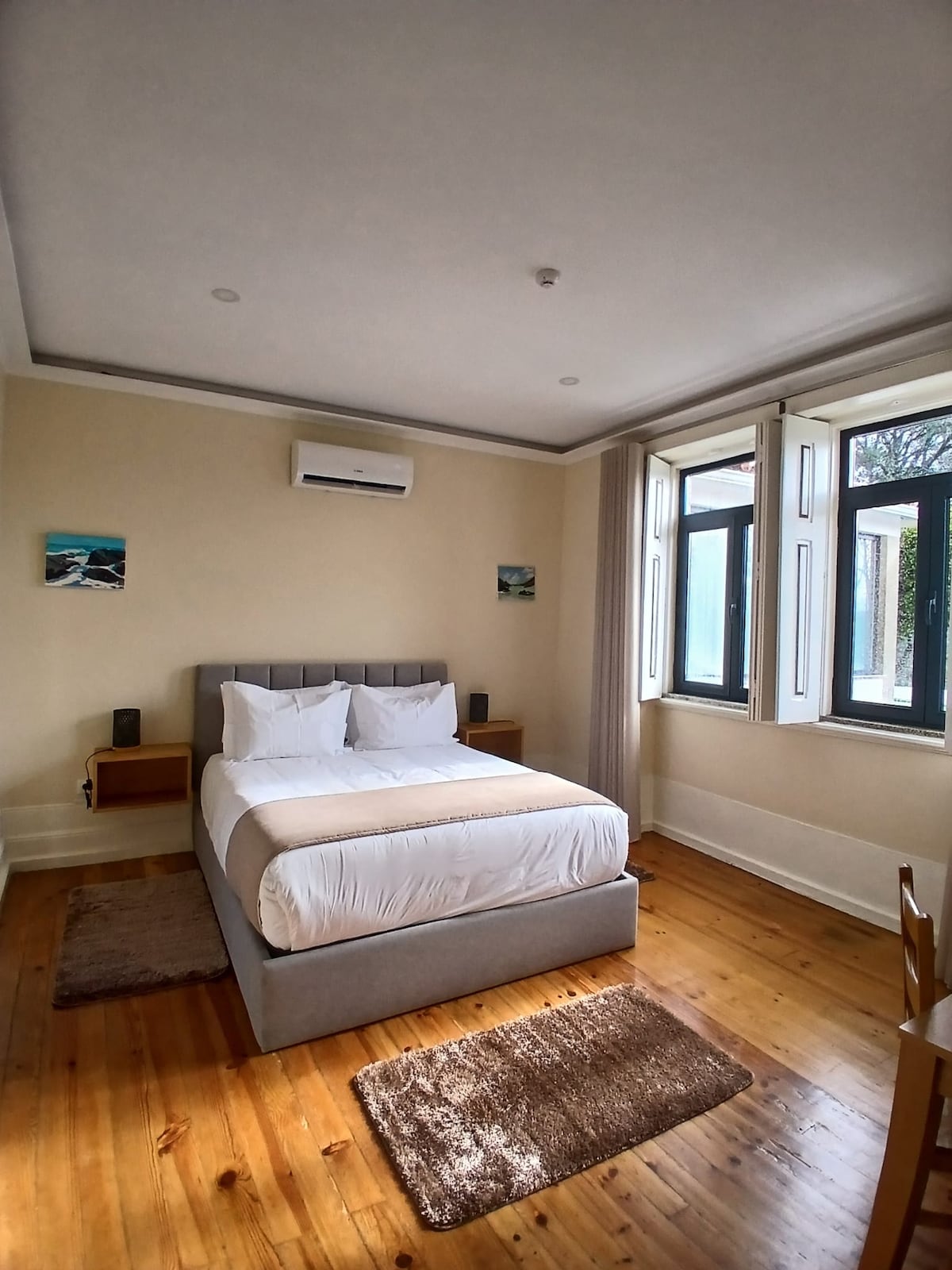 Descubra este quarto moderno e acolhedor, ideal para quem procura conforto, descanso e uma estadia tranquila num ambiente cuidado e luminoso. Com uma decoração elegante e linhas simples, oferece o espaço perfeito para relaxar depois de um dia a explorar a região.