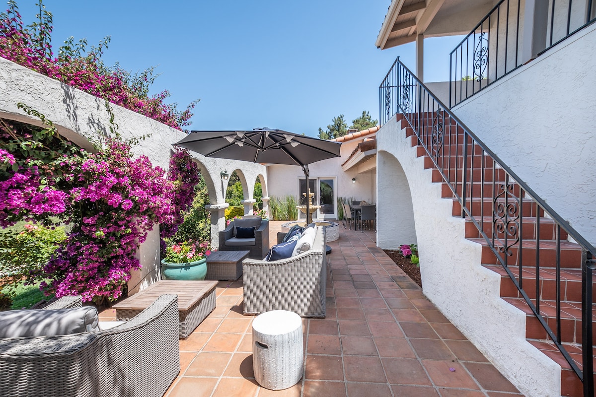 170+ Perfect 5.0 Reviews – Amazing views, peaceful and beautiful space on a French estate in San Diego Wine Country, adjacent to the Wild Animal Park. A perfect setting to celebrate a special occasion and create memories. Amazing sweeping views of wine country, golf course and mountains on the 14th green with full access to the pool, spa, covered parking, EV chg. and private European garden park. Beautiful luxury ADU suite with a kitchen, sitting room, bathroom, steam shower/sauna and bedroom.