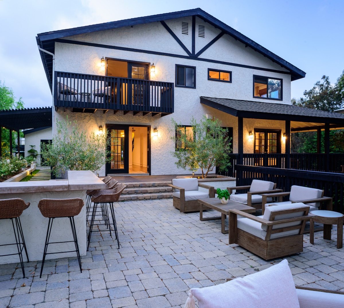 The backyard offers fire-pit, 6-hole putting green, hammock, relaxing waterfall and a variety of outdoor games including horseshoes and bocce ball.