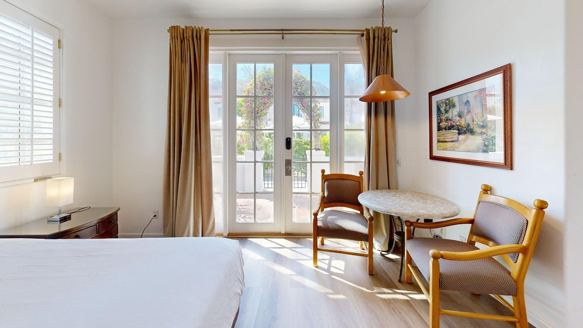 La Quinta short-term permit #064335; 2 bedrooms/2 bathrooms, max occupancy 6. Escape to this 2BR, 3BA two-story Spa Villa nestled behind La Quinta Resort. The first floor features a cozy living/dining area, full kitchen with ample cookware, and a private bedroom suite with a walk-in shower and soaking tub. Upstairs, a spacious suite with a sitting area and separate entrance awaits. Enjoy two private patios, mountain views, and direct access to the pool and hot tub.